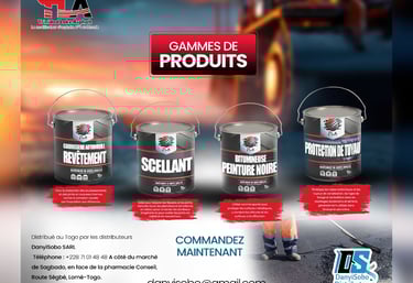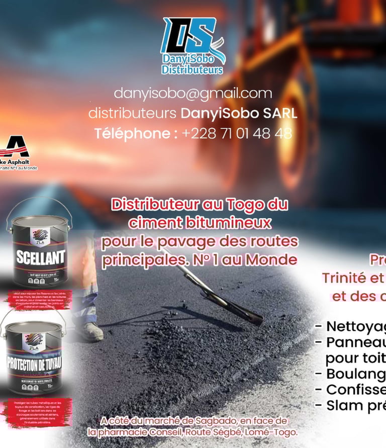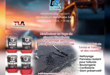 Danyisobo Sarl, votre distributeur exclusif des produits TLA (Trinidad Lake Asphalt) pour vos revêtements bitumineux. Nous garantissons une protection durable et efficace de vos surfaces.